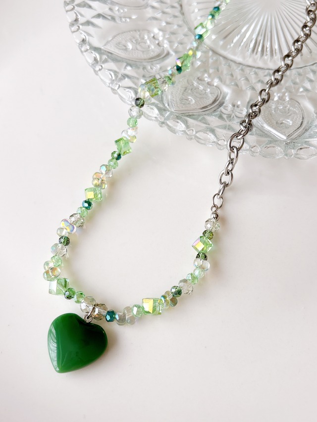 爽やかなグリーンネックレス♡ 華奢シリーズ持ってる方 重ね付け可愛いですよぉ♡ 45+5cm ステンレスチェーン