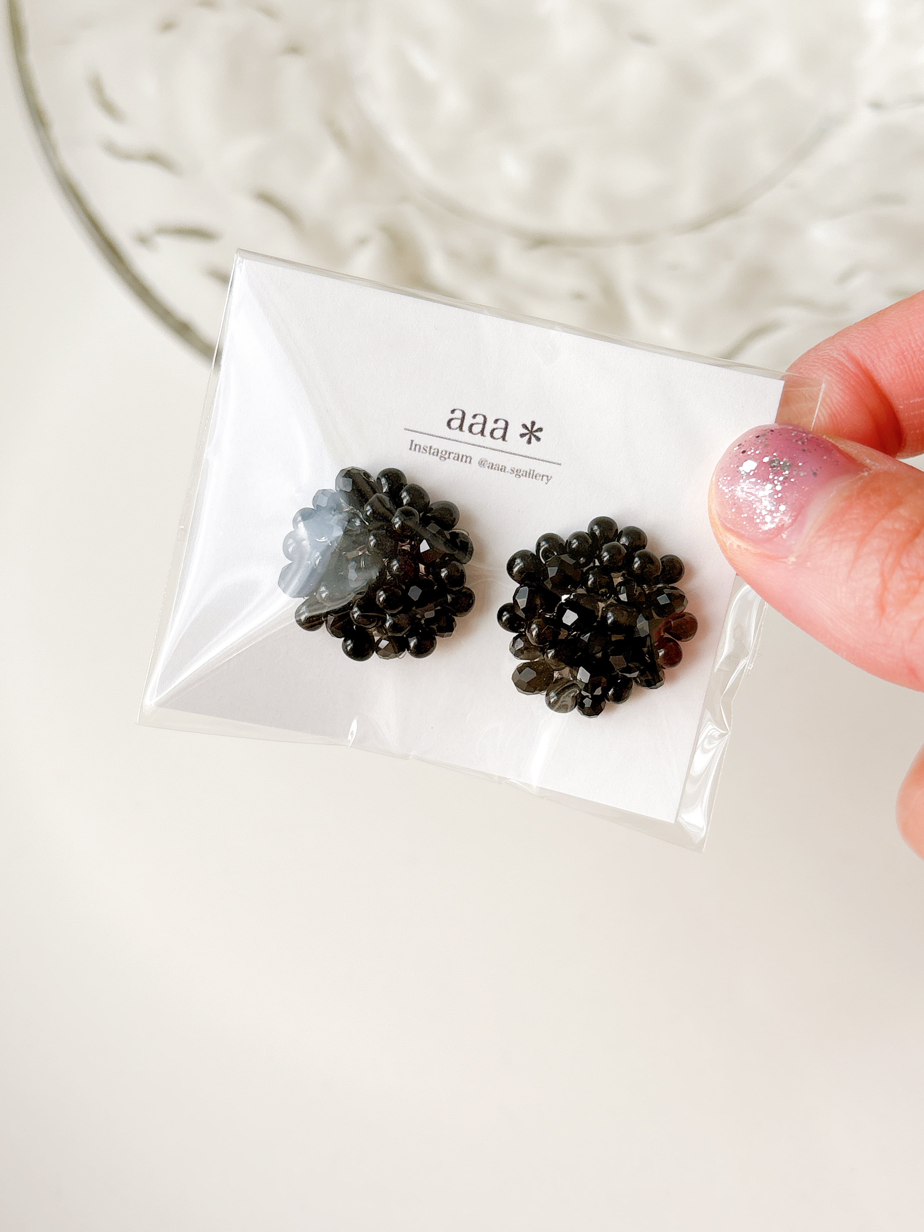 ブラックガラスビーズを一つ一つ