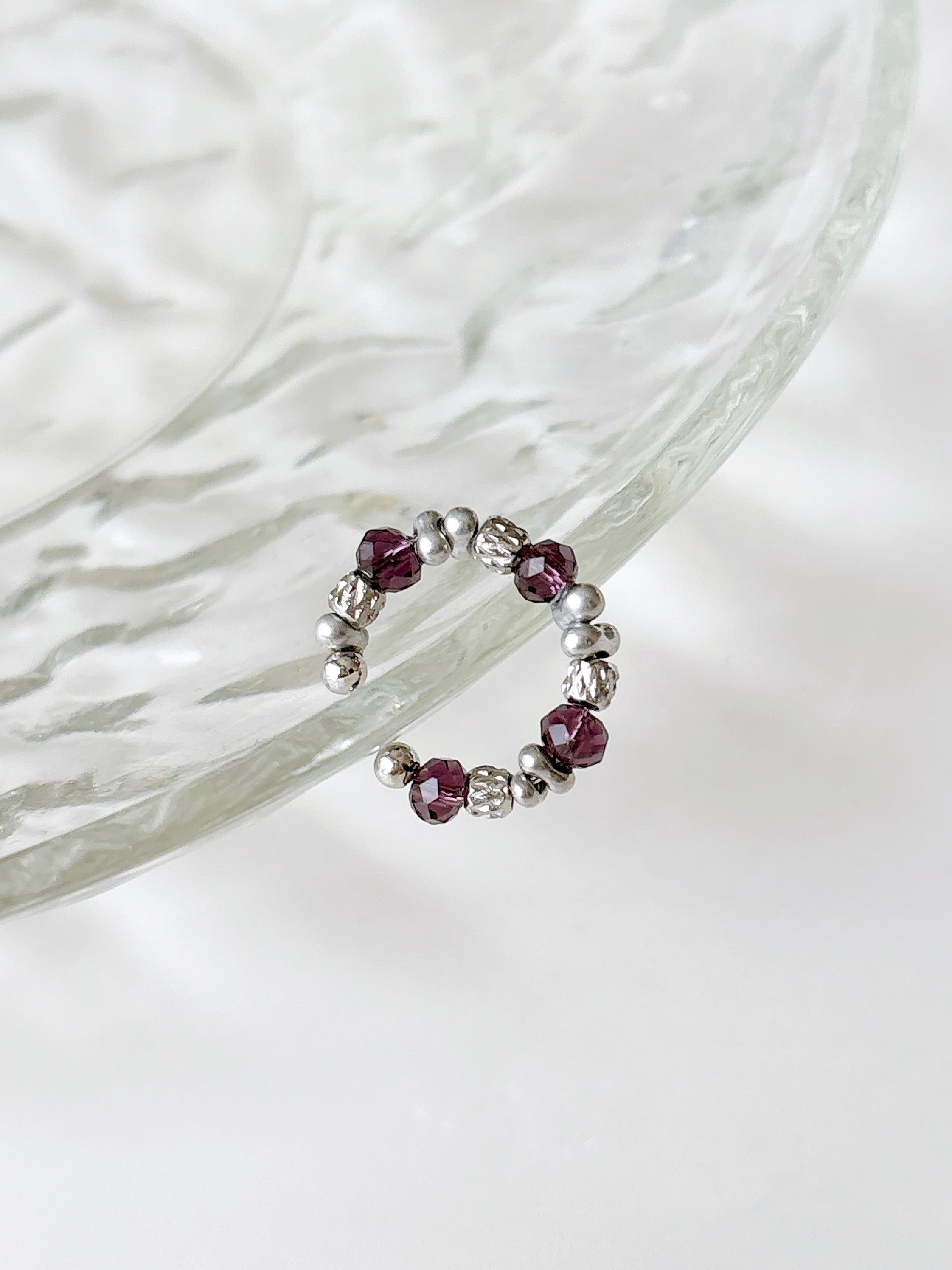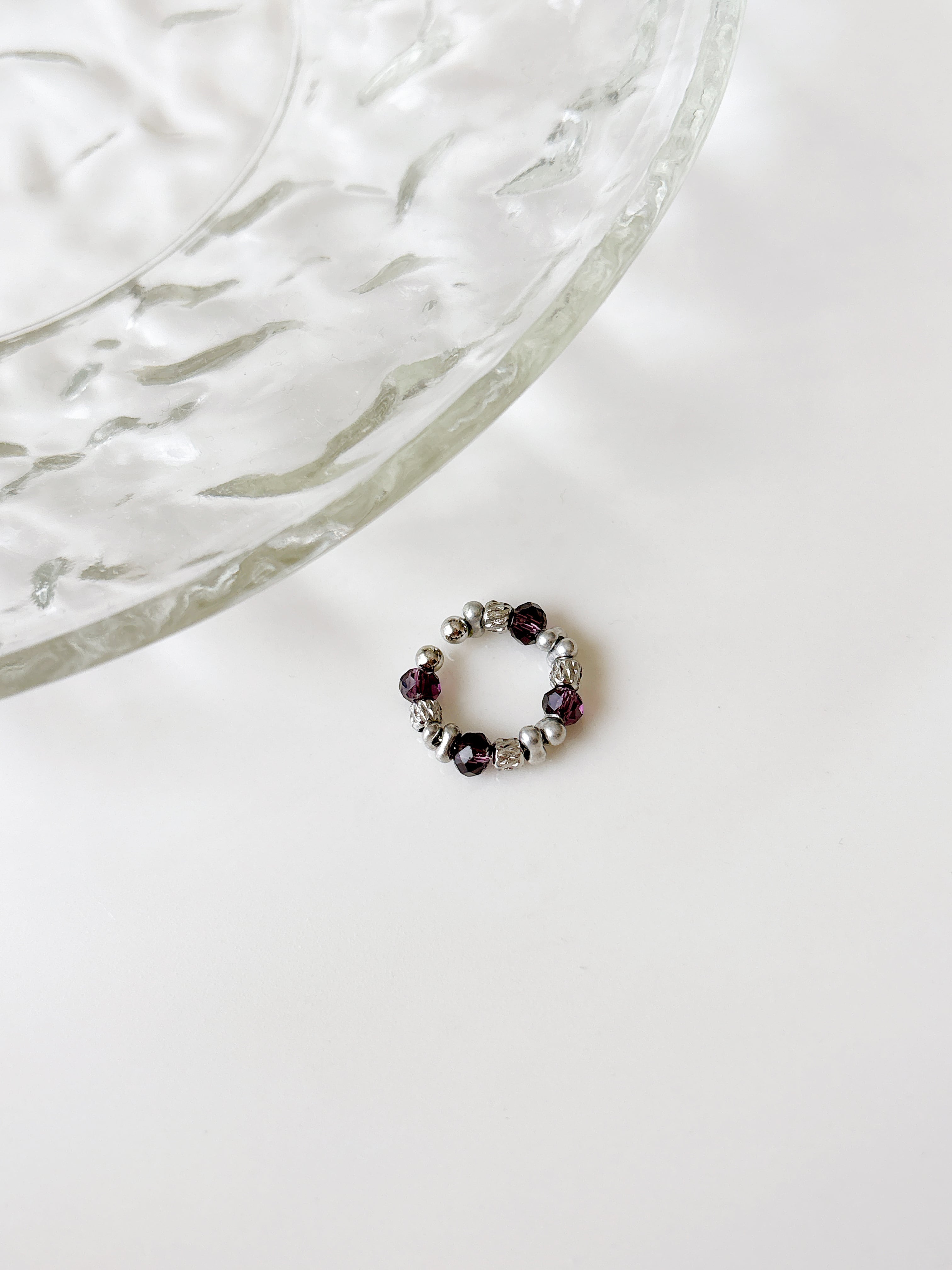 マットシルバーとパープルガラスを合わせた かっこいいイヤカフ♡ 完全一点ものです! 挟むだけで簡単おしゃれ♡