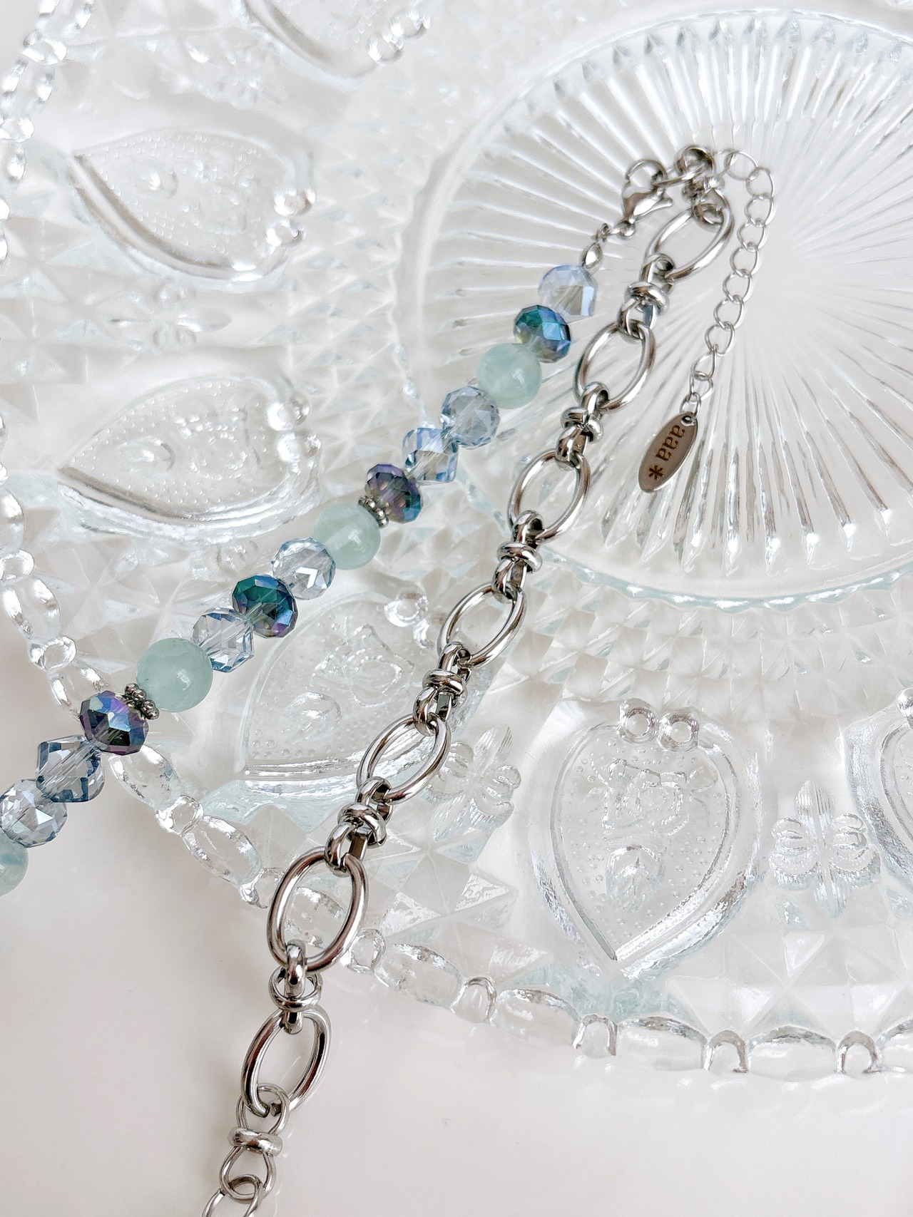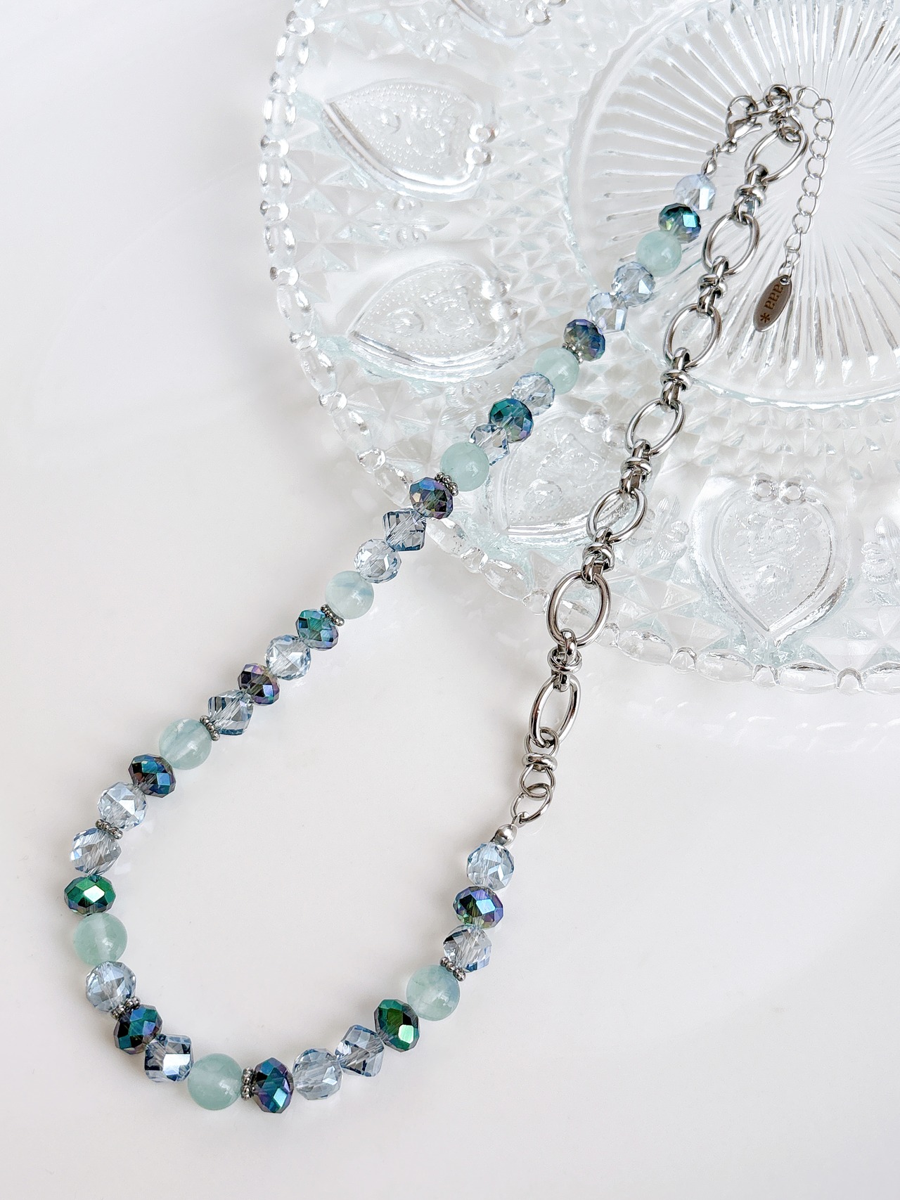 グリーンブルーのガラスビーズと