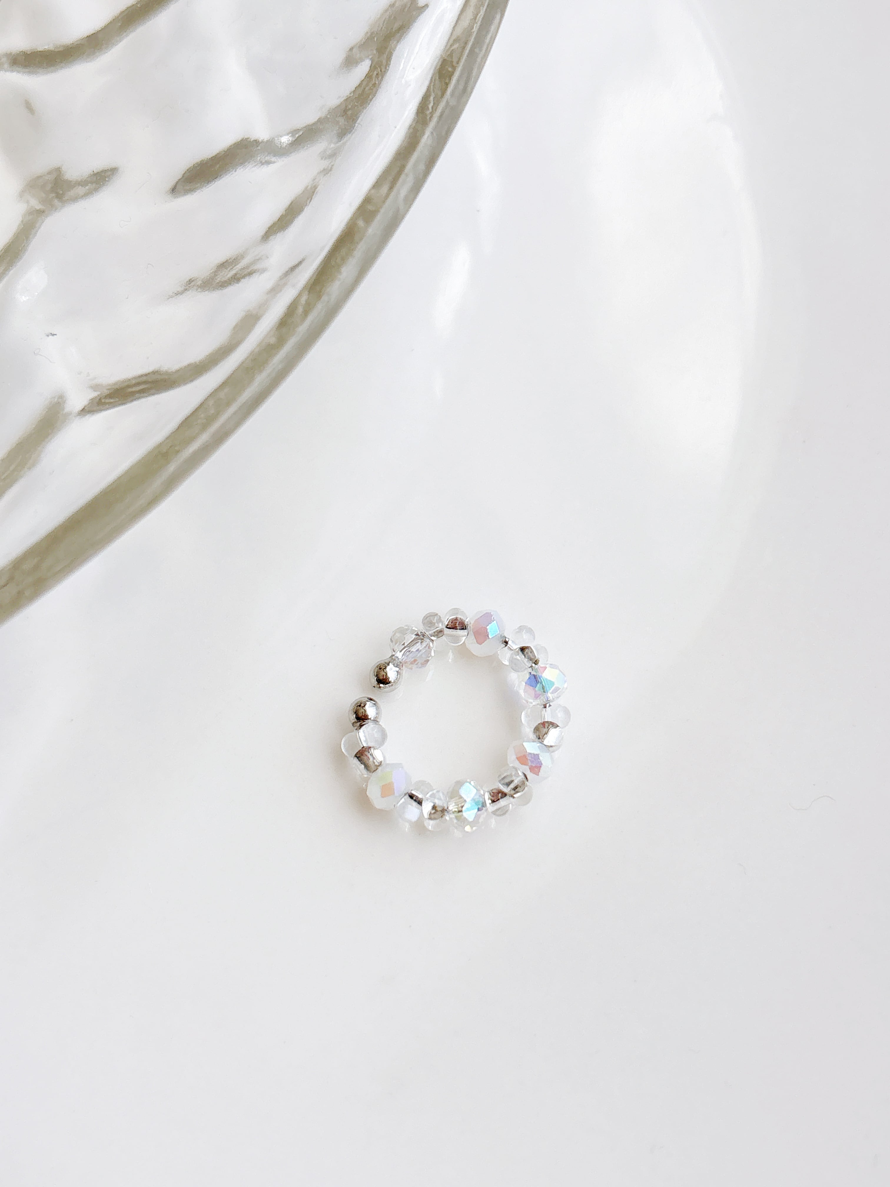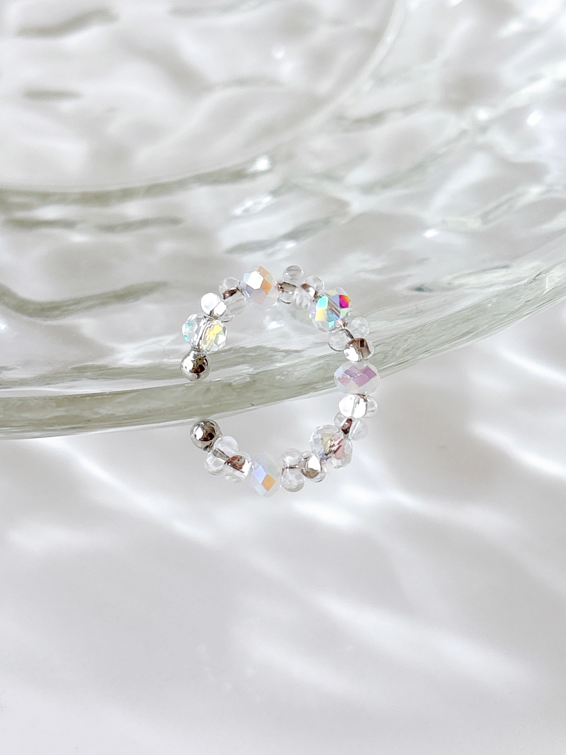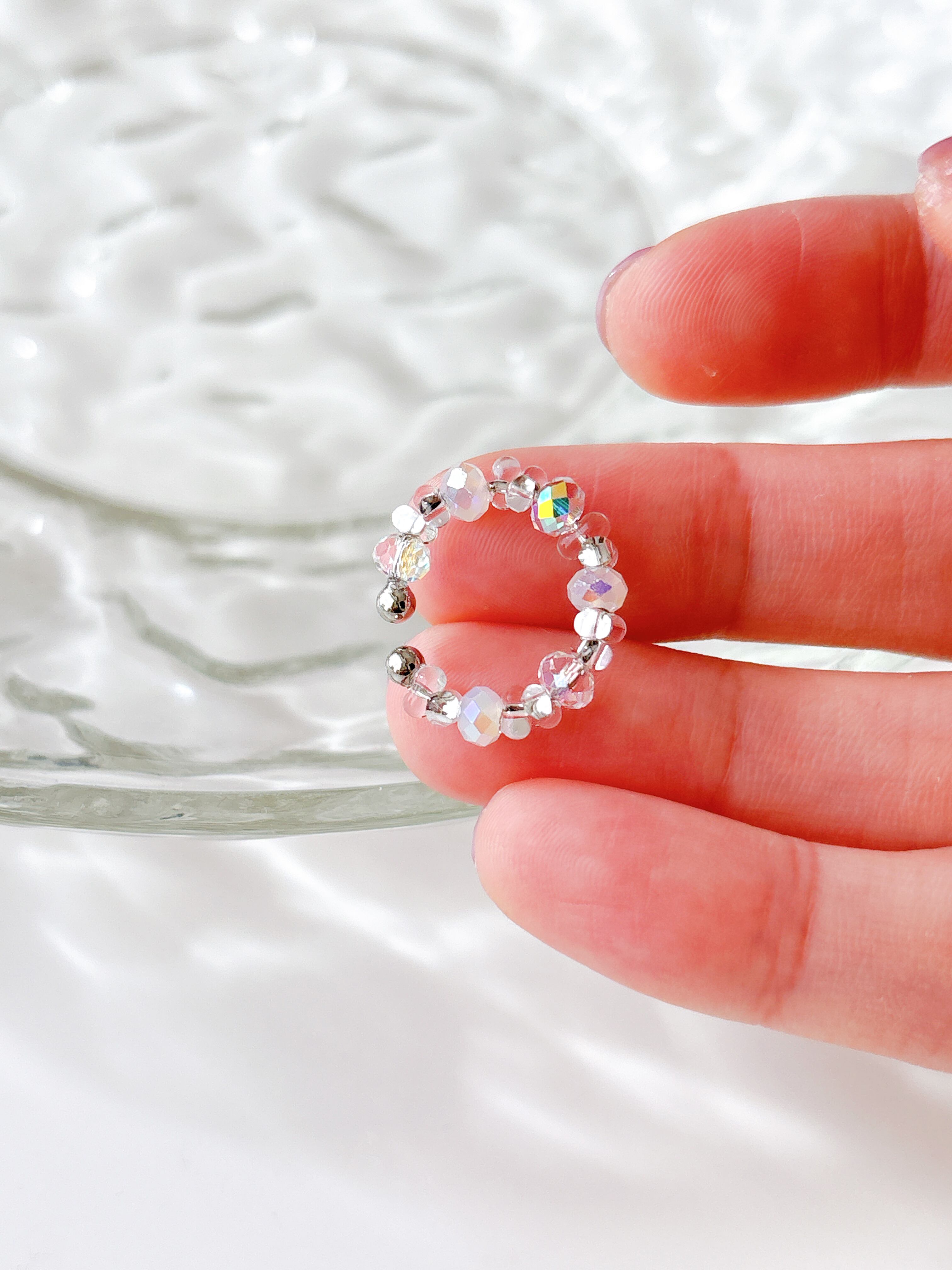 オーロラカラーのガラスビーズ白とクリアを MIXにデザインしました♡ 重ねてつけたらキラキラ2倍♡ 同じビーズを使ったデザインが 他にも3種類あります!