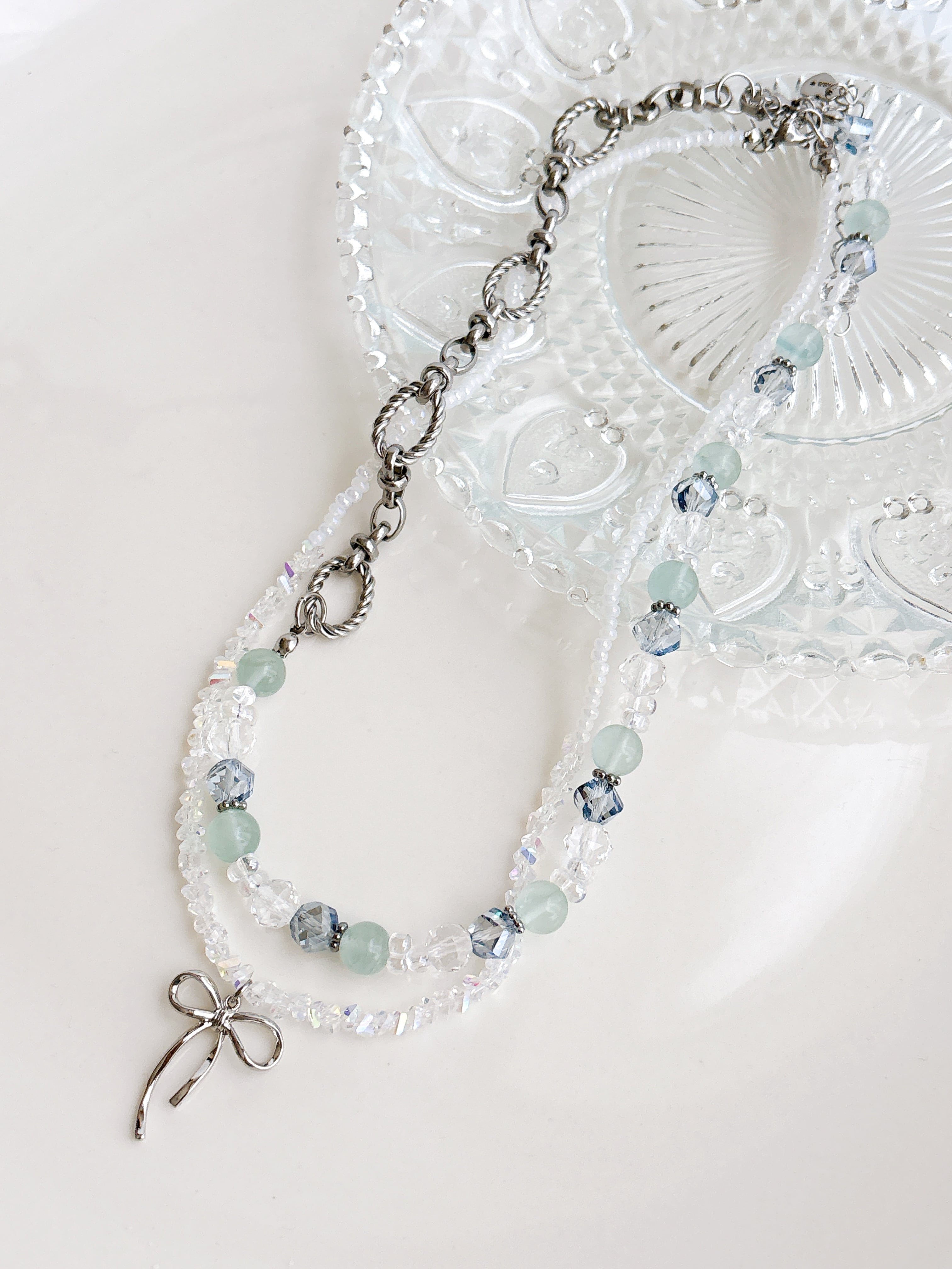 ホワイトビーズに デコルテ部分はオーロラカラーで キラキラです♡ 45+5cm ステンレス