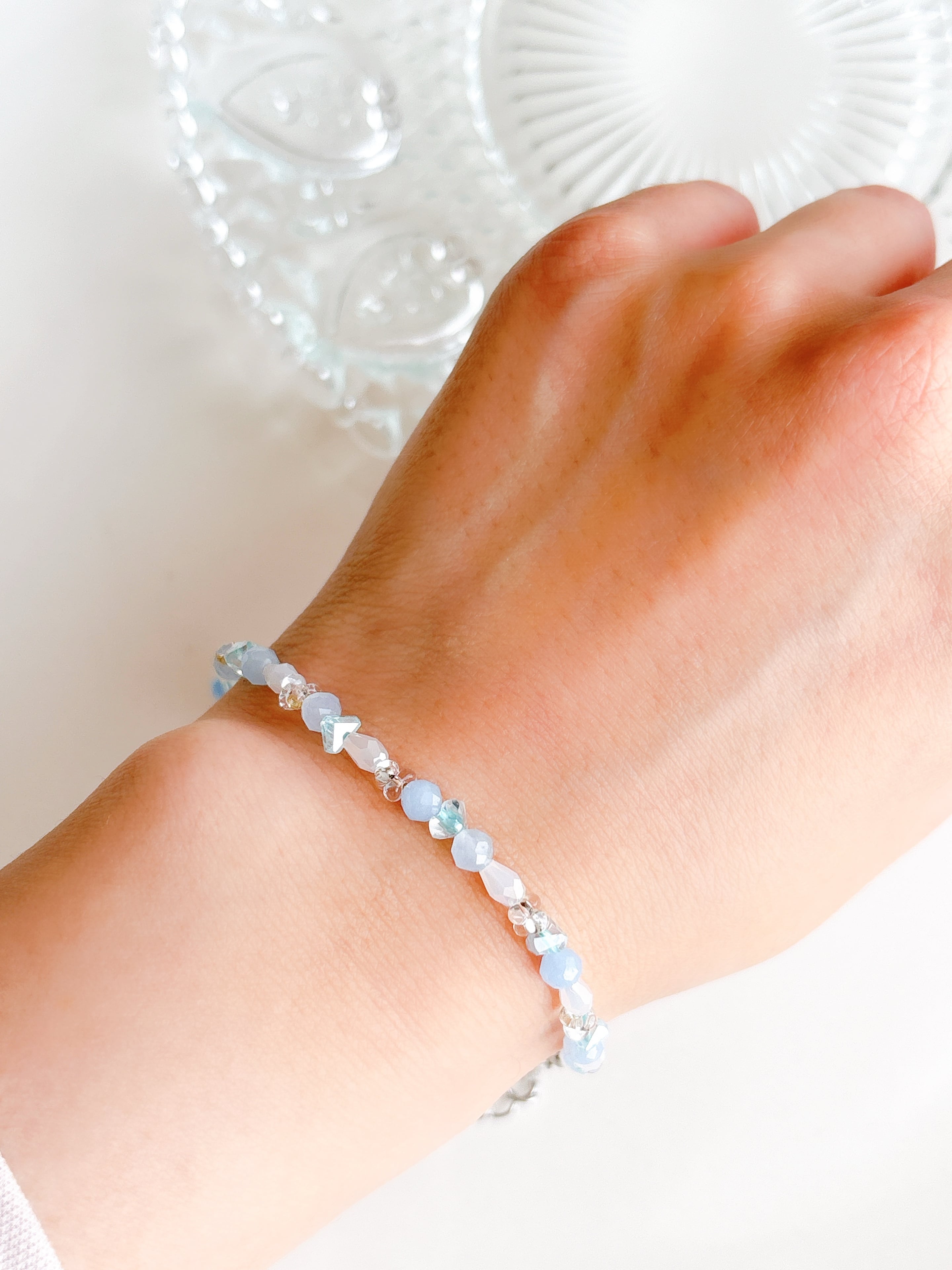 4mmアクアマリンを使った 華奢シリーズ♡ 約16+5cm アクアマリン ・癒し/リラックス ・心の安定 ・コミュニケーションの向上 ・3月の誕生石
