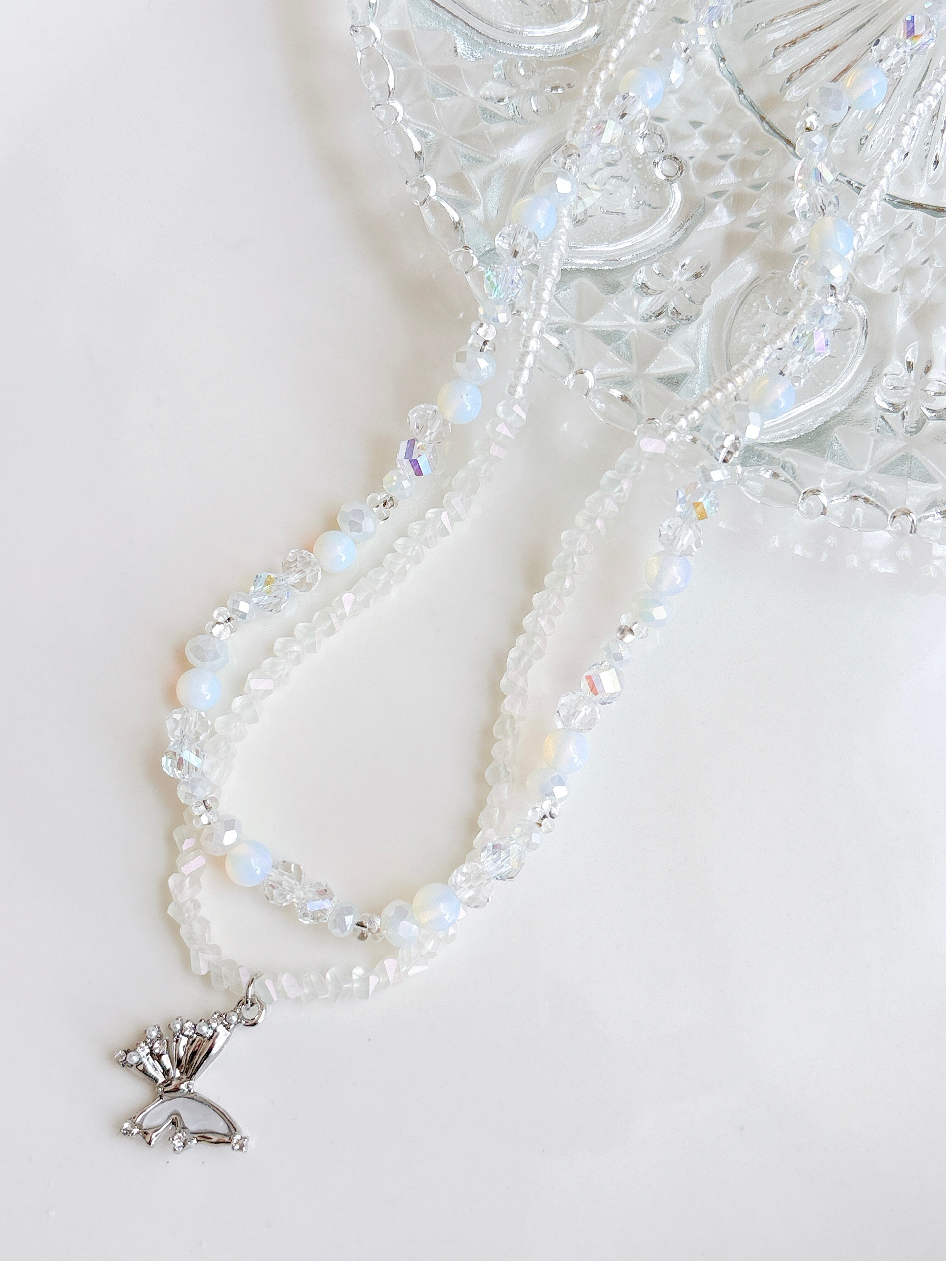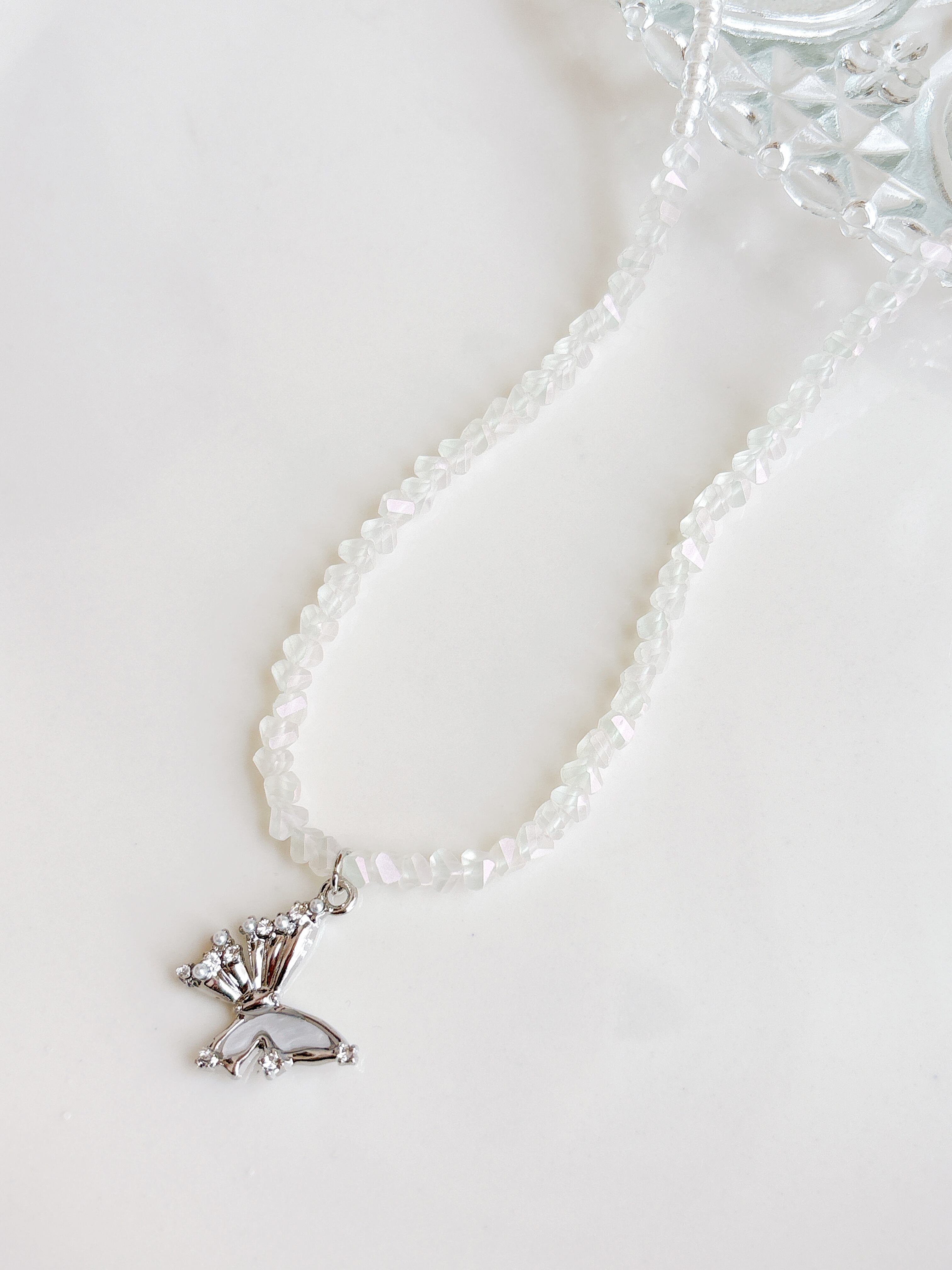 デコルテ周りはマットオーロラビーズと 蝶々チャームを合わせた シンプルなネックレス♡ こちらの蝶々チャーム人気です♡ 45+5cm