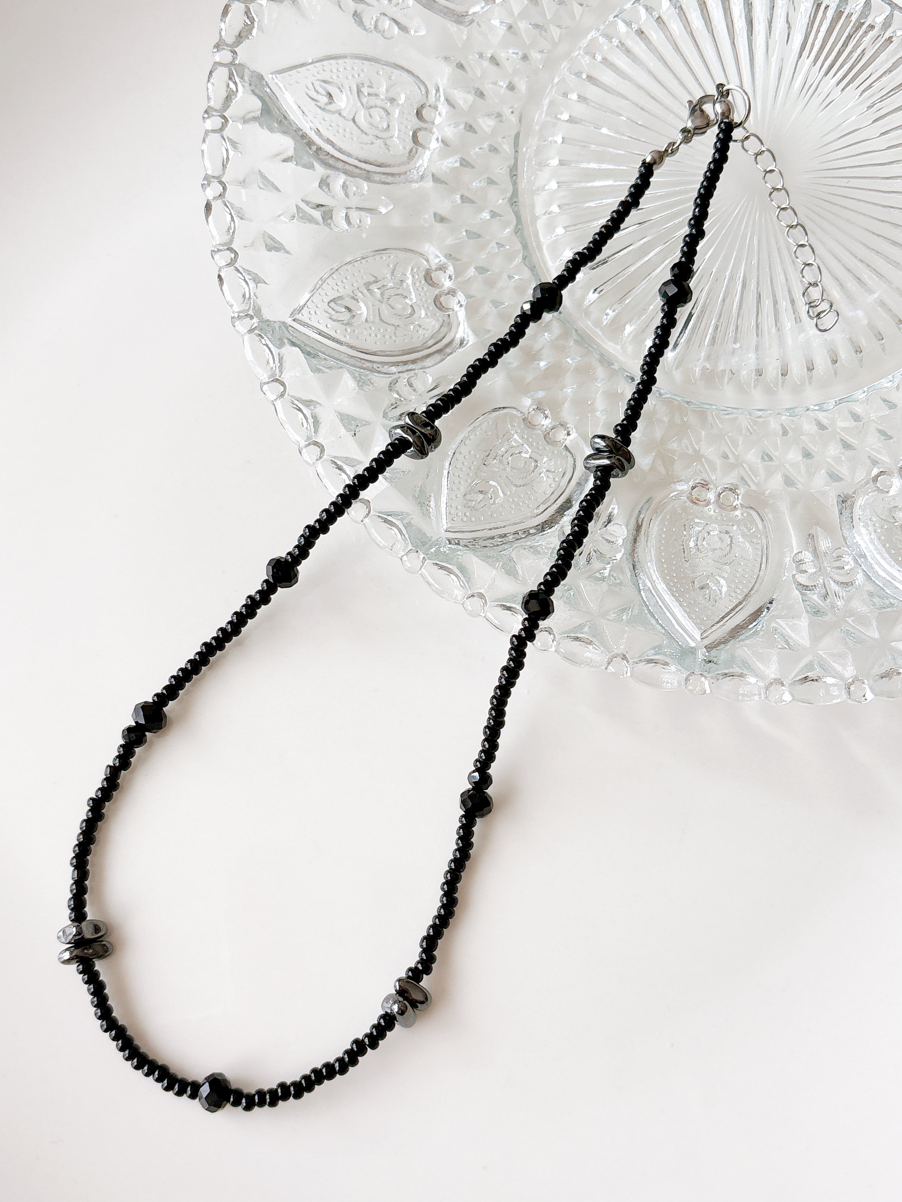 ブラックビーズをベースに 歪なヘマタイトをあわせました♡ かっこいいデザインです♡ 45+5cm