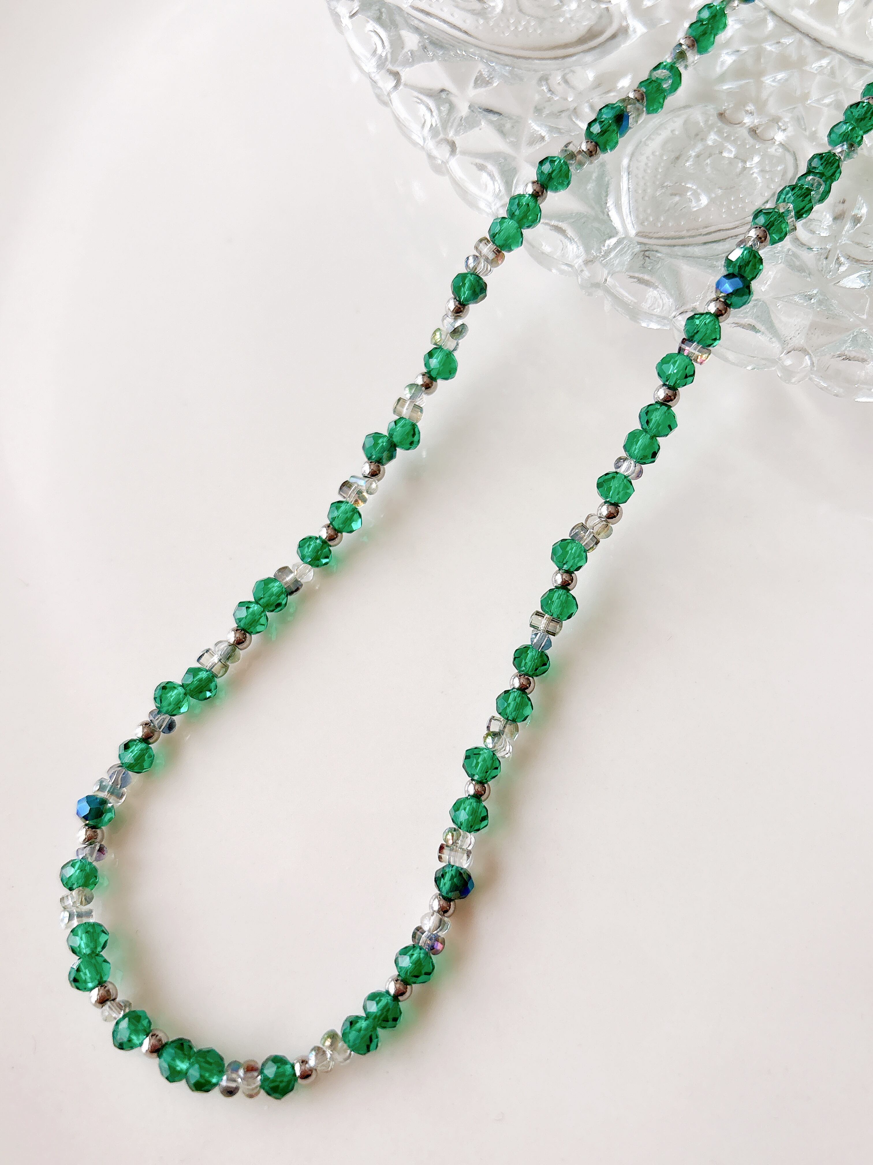 濃いグリーンガラスをメインに 映えるネックレスです♡ 重ね付けに万能ちゃん! 45+5cm